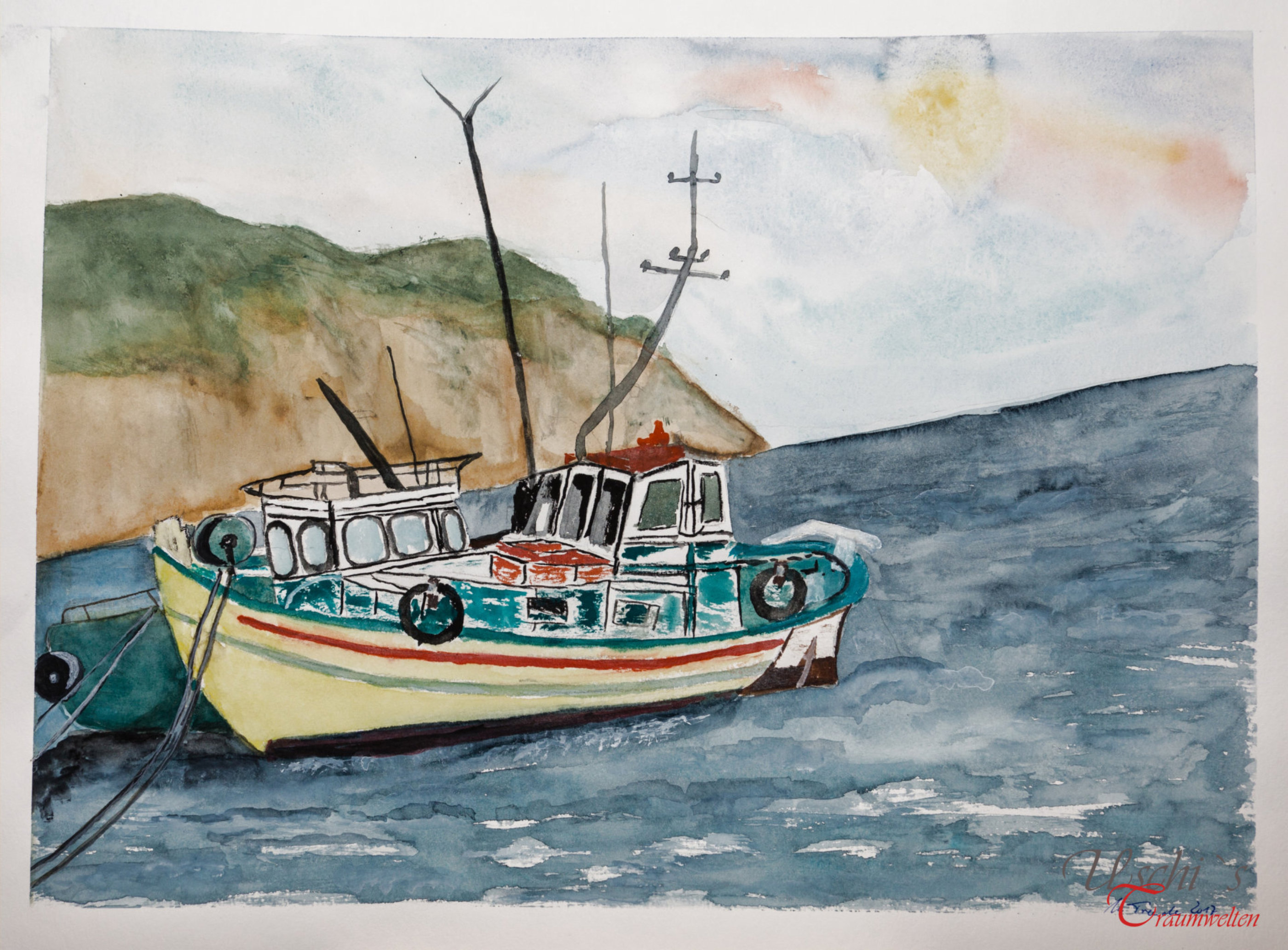 Aquarellbilder - Wasser - Boote - die See